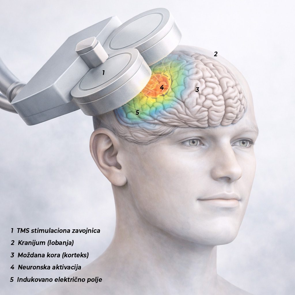 Transkranijalna magnetna stimulacija (TMS) je neinvazivna procedura koja koristi magnetna polja za stimulaciju nervnih ćelija u mozgu. Prvenstveno se koristi za lečenje mentalnih i neuroloških stanja kada standardni farmakoterapijski protokoli i/ili psihoterapija nisu bili efikasni.